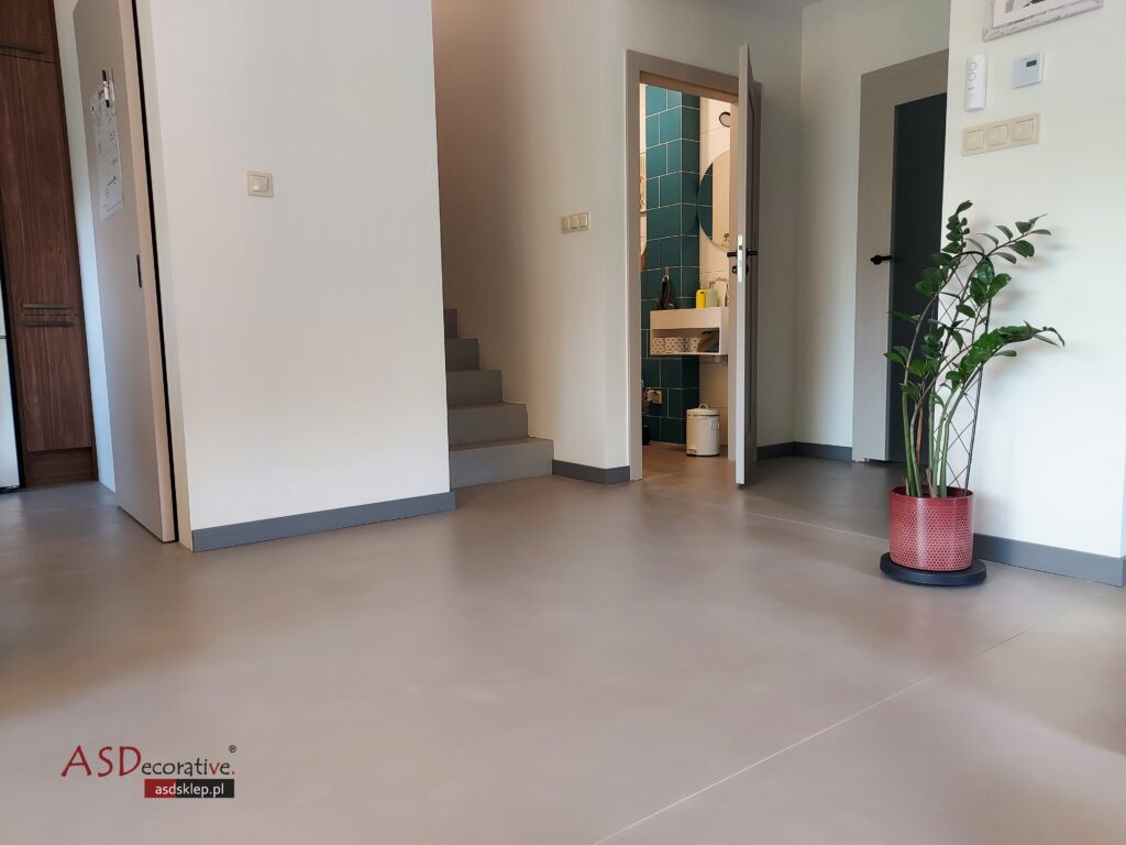 Najczęściej 2-3 warstwy mikrocementu. Nakładamy je cienko, kontrolując strukturę i wzór.