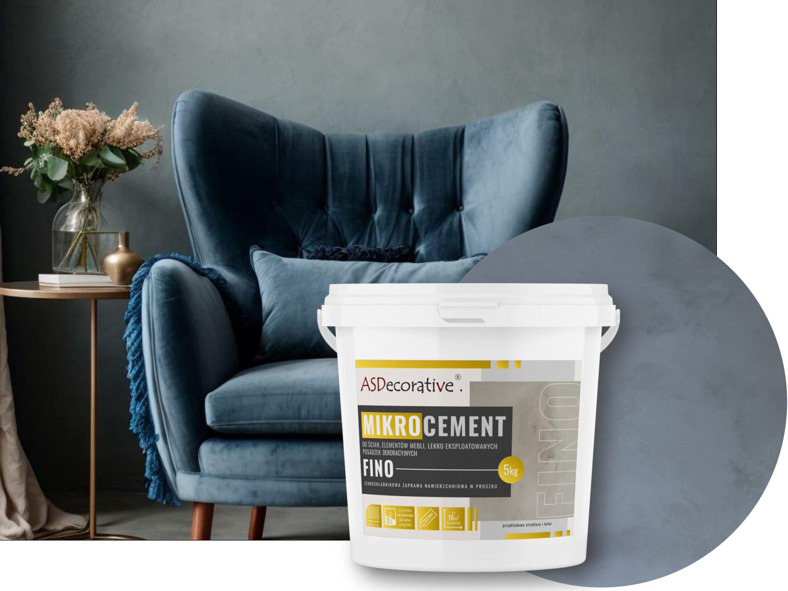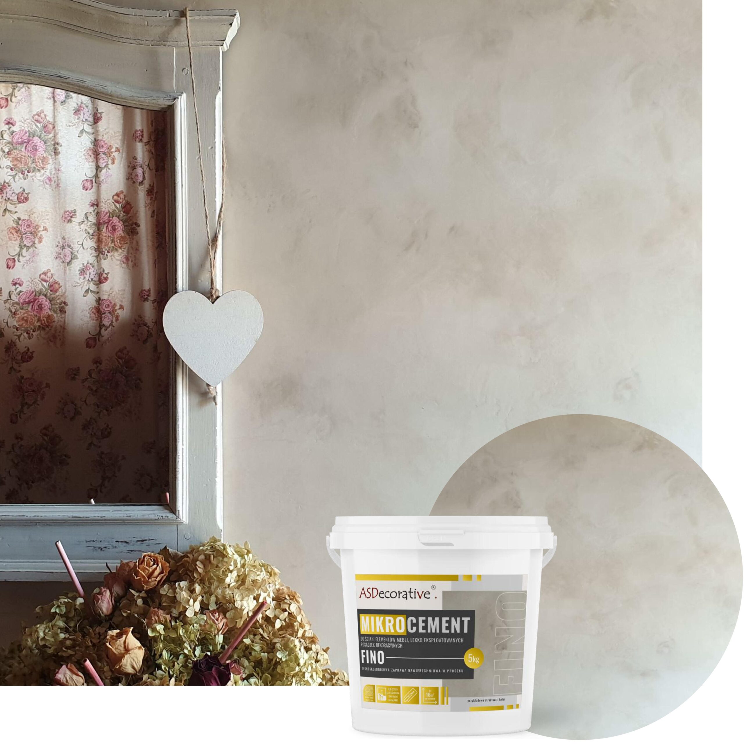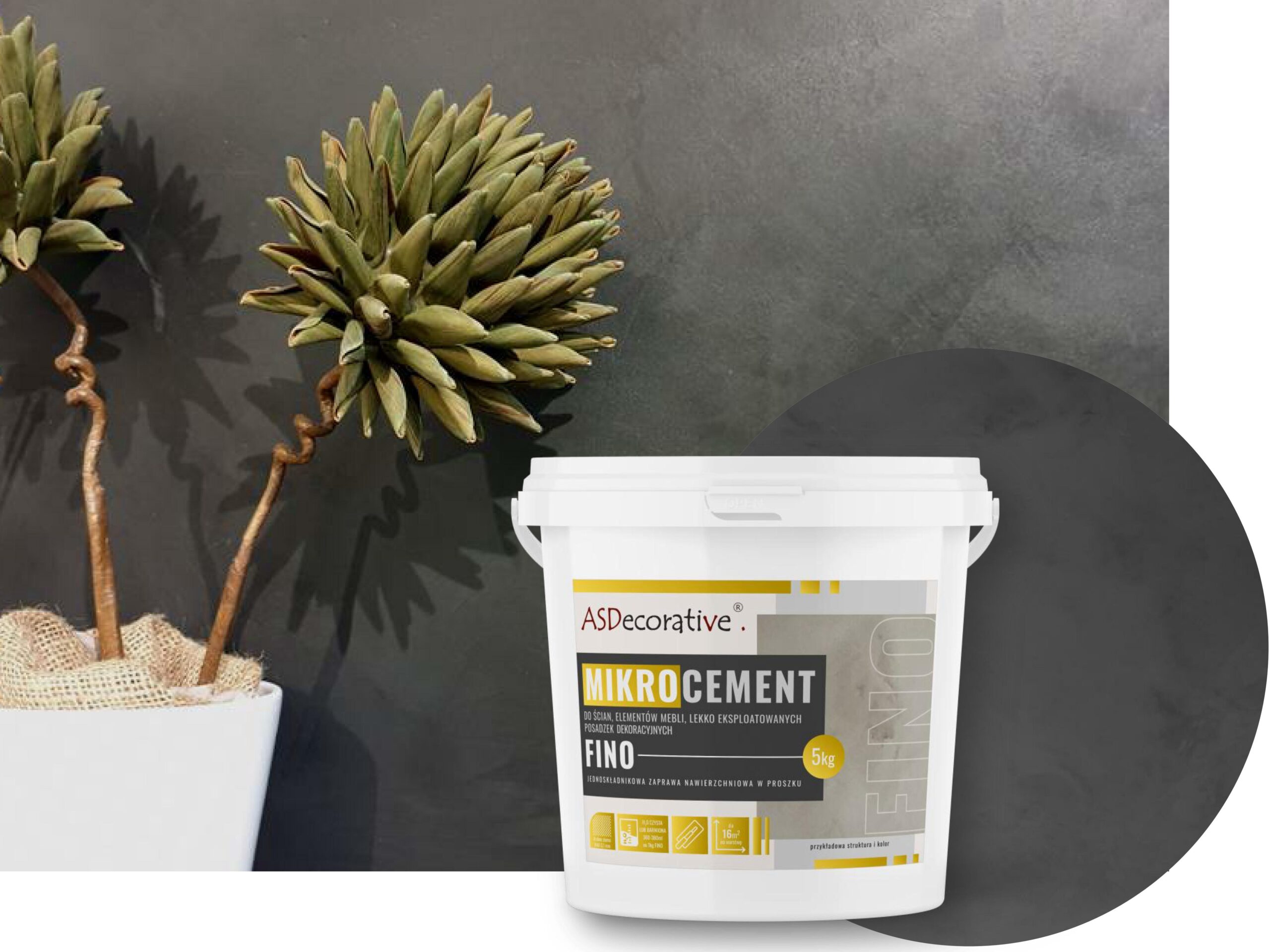 Mikrocement FINO w proszkowej odmianie stosowany najczęściej do dekoracji ścian, sufitów oraz elementów mebli, umożliwia wykonanie bardzo gładkiej powierzchni z widocznymi przebarwieniami, przypaleniami, oraz efektu „miękkiej chmurki”.