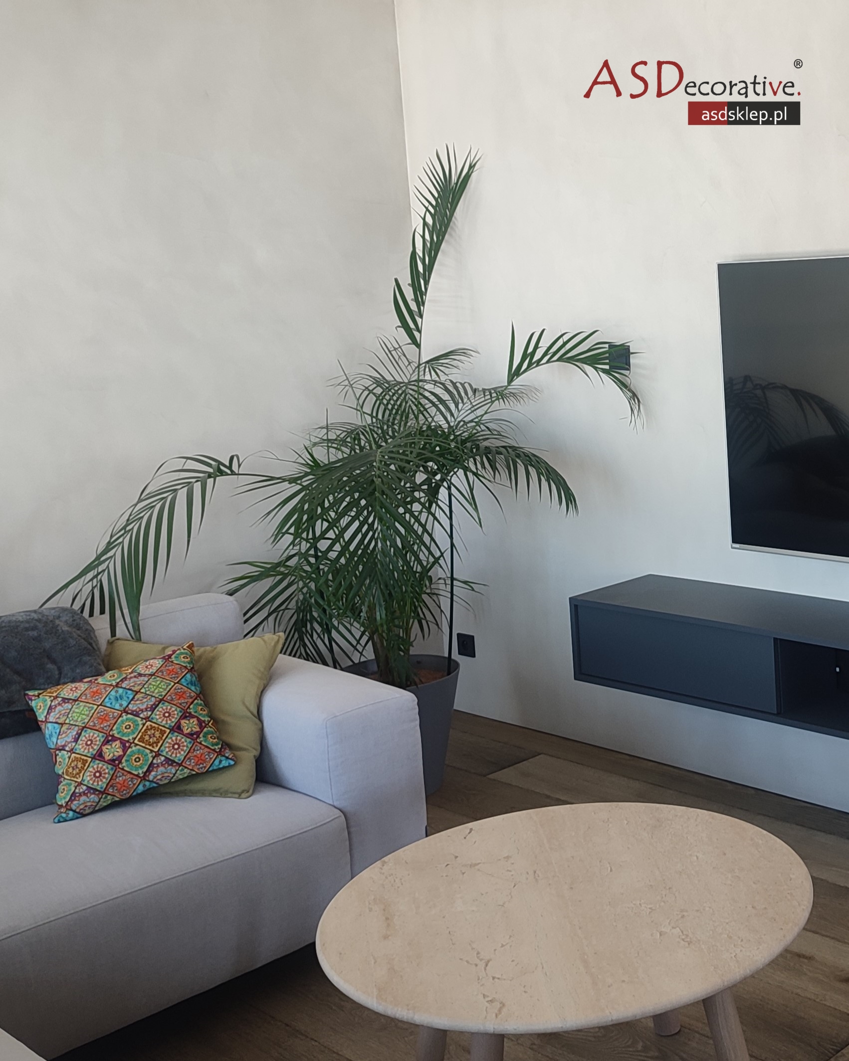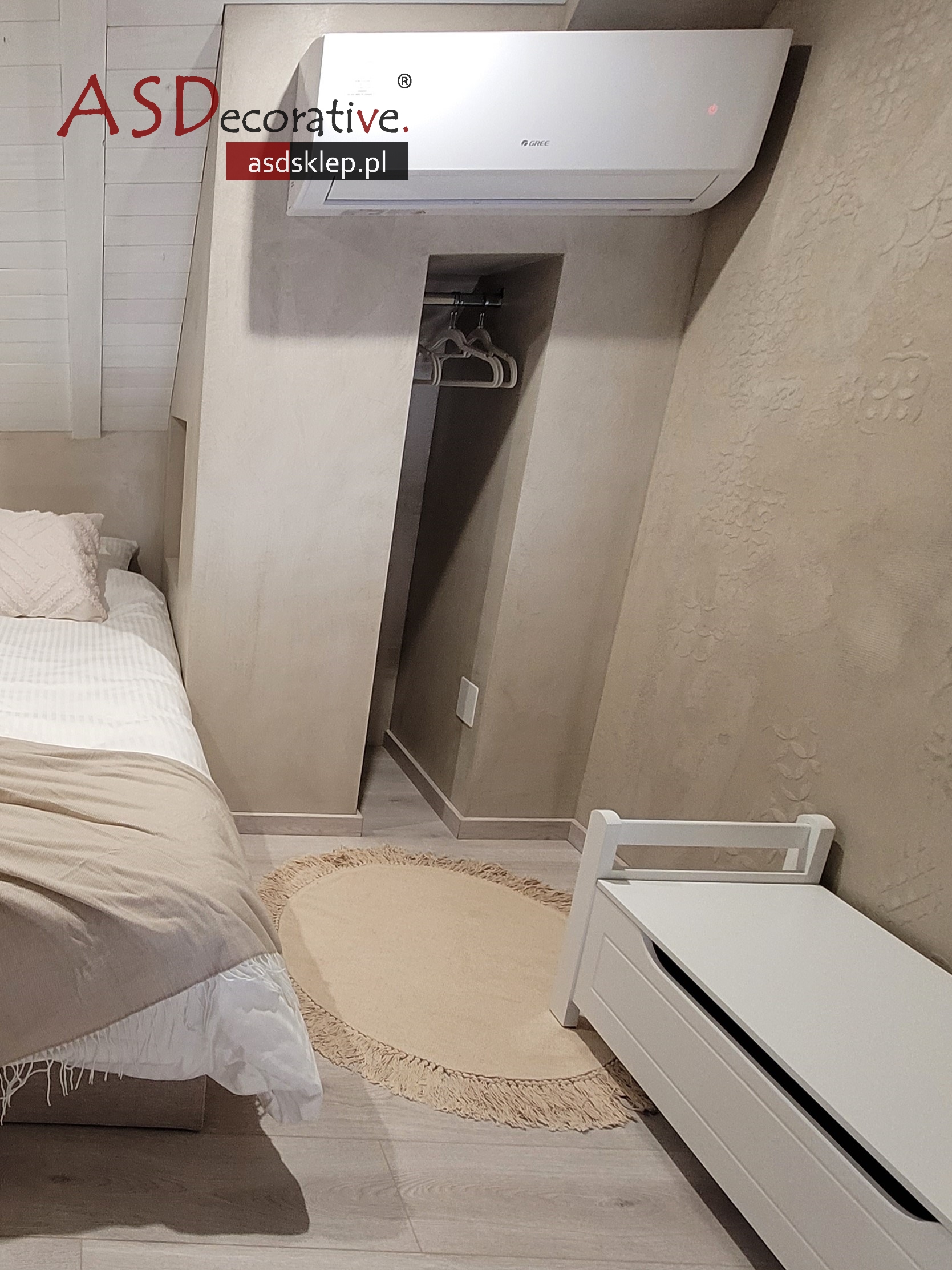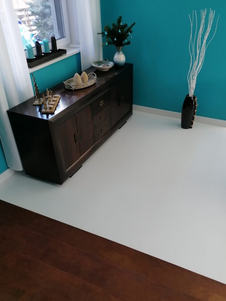 Mikrocement FINO w proszkowej odmianie stosowany najczęściej do dekoracji ścian, sufitów oraz elementów mebli, umożliwia wykonanie bardzo gładkiej powierzchni z widocznymi przebarwieniami, przypaleniami, oraz efektu „miękkiej chmurki”.