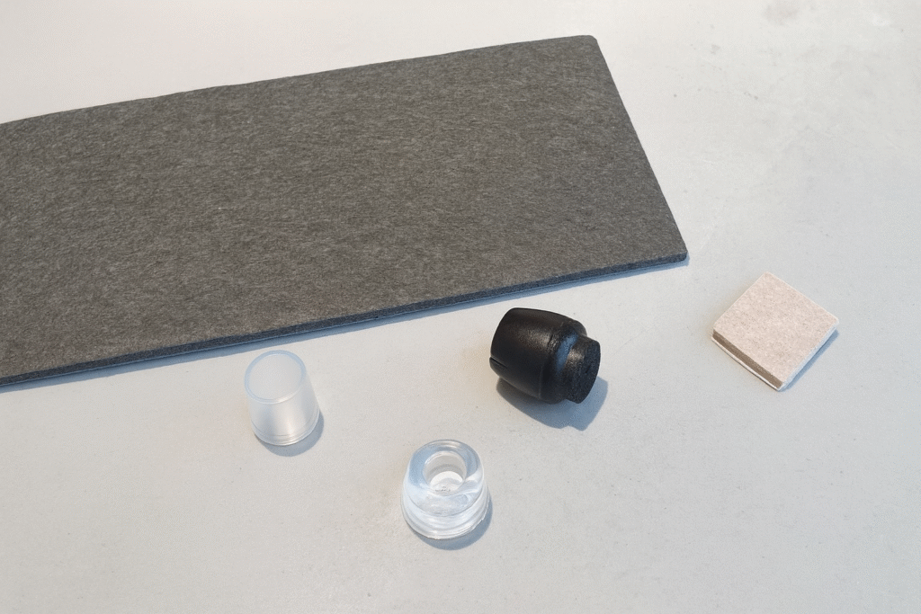 - nogi mebli typu sofa zabezpiecz w sposób utrudniający jego niepożądane przesuwanie się, np. podkładkami z silikonu, lub z korka i kontroluj ich stan (filc posiadający właściwości poślizgowe nie jest dobrym rozwiązaniem w tym przypadku),